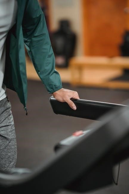 Proper belt maintenance ensures smooth operation and extends the treadmill’s life. Regularly check the running belt for wear and tear, looking for frays or cracks. If the belt feels loose, it requires adjustment. Use the rear adjustment bolts to tighten the belt, making small adjustments and testing after each turn.